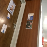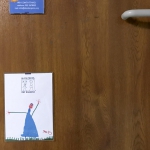 Cosa ci fa un cartello appeso così basso sulla porta della nostra segreteria? Facile: è un cartello ad altezza bambino! Contiene un disegno fatto da un nostro piccolo ospite, che raffigura un bambino che saluta e da il benvenuto in segreteria.