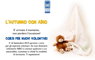 Sono aperte le iscrizioni per i molto attesi corsi per nuovi volontari ABIO Bergamo! I corsi cominciano il 16 Settembre 2015, chiedi informazioni e iscriviti: le iscrizioni terminano l’8 Settembre 2015.